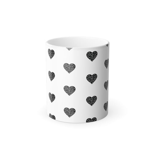 Yes to Love Hearts (Black Print) Color-Changing Affirmation Mug