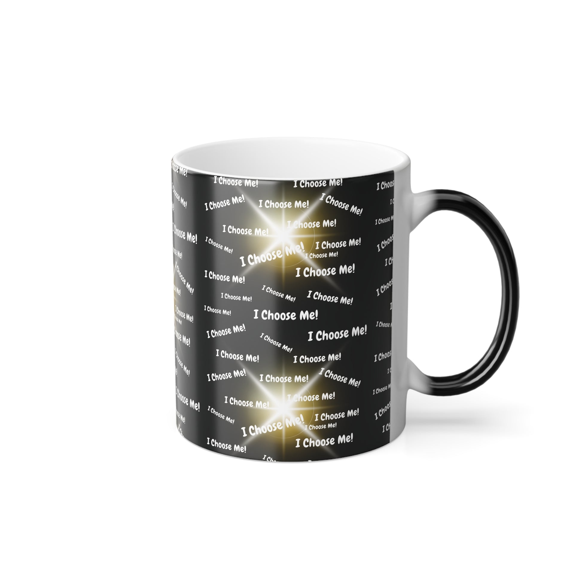 Take back your power with this color-changing powerful mug, featuring the uplifting phrase “I Choose Me" in vibrant black with white and gold color print and graphics.